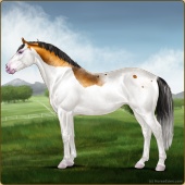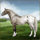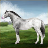 Name: foal 1941026Age: 12 Stallion Color: Silver Roan Grullo Sabino Blanket Appaloosa Breed: Irish Sport Horse |  |