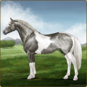 Name: foal 47641419Age: 13 Stallion Color: Silver Black Tobiano Splash White Sabino Breed: Irish Sport Horse |  |