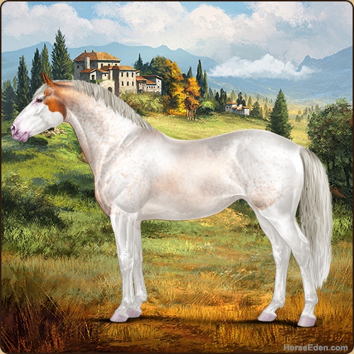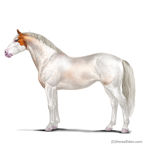 Color: Silver Copper Bay Roan Splash White