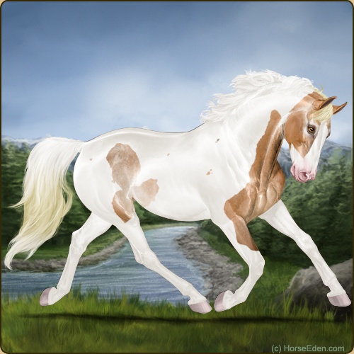 Color: Flaxen Red Roan Dun Tobiano Splash White Rabicano