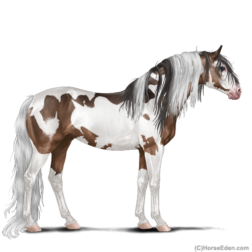 Color: Mahogany Bay Dun Tobiano Splash White Sabino Frame