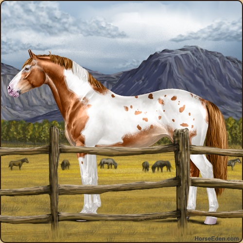 Color: Chestnut Tobiano Blanket Appaloosa