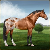 Name: foal 57837070Age: 10 Stallion Color: Mahogany Bay Varnish Appaloosa Breed: Sport Horse |  |