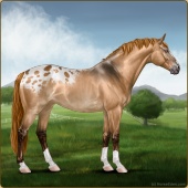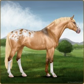 Name: foal 2364583Age: 9 Stallion Color: Palomino Near Leopard Appaloosa Breed: Sport Horse |  |