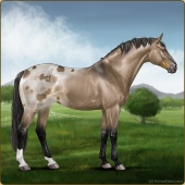 Name: 37823664Age: 21 Mare Color: Red Roan Dun Snowflake Appaloosa Breed: Sport Horse Foal Rating: S/S/S |  |