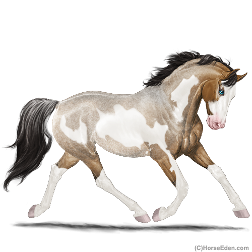 Color: Mahogany Bay Roan Dun Splash White Rabicano Frame