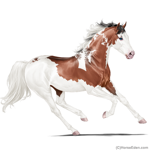 Color: Blood Bay Dun Tobiano Splash White Sabino