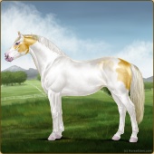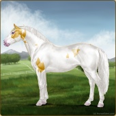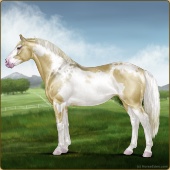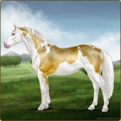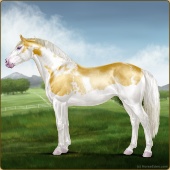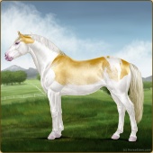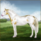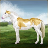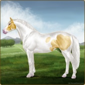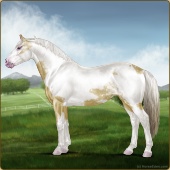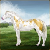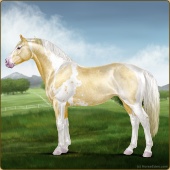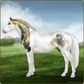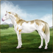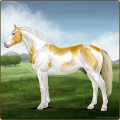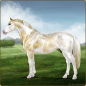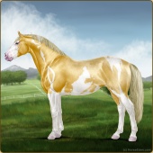 Name: foal 93251945Age: 11 Stallion Color: Gold Champagne Tobiano Splash White Sabino Rabicano Frame Breed: Irish Sport Horse |  |