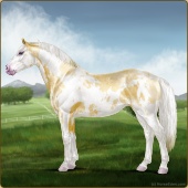 Name: foal 53581510Age: 10 Stallion Color: Gold Champagne Tobiano Splash White Sabino Rabicano Frame Frost Appaloosa Breed: Irish Sport Horse |  |