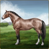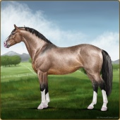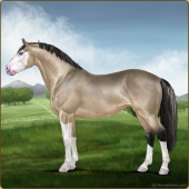 Name: foal 2143382Age: 12 Stallion Color: Buckskin Pearl Splash White Breed: Irish Sport Horse |  |
