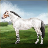 Name: foal 5880069Age: 14 Stallion Color: Brown Roan Frost Appaloosa Breed: Irish Sport Horse |  |