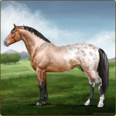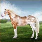 Name: foal 26108142Age: 12 Mare Color: Palomino Roan Splash White Blanket Appaloosa Breed: Irish Sport Horse |  |