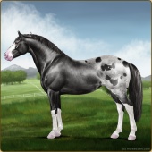 Name: foal 7335323Age: 7 Stallion Color: Black Sabino Rabicano Varnish Appaloosa Breed: Irish Sport Horse |  |