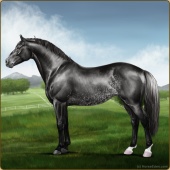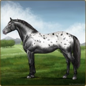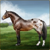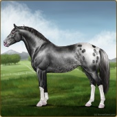 Name: foal 11211876Age: 8 Stallion Color: Smokey Black Sabino Rabicano Varnish Blanket Appaloosa Breed: Irish Sport Horse |  |