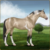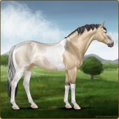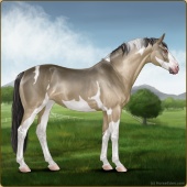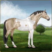 Name: 37813905Age: 18 Mare Color: Dunskin Tobiano Breed: Sport Horse Foal Rating: S/S/S |  |