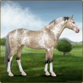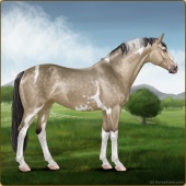 Name: 38584580Age: 15 Gelding Color: Light Bay Roan Dun Tobiano Appaloosa Breed: Sport Horse Foal Rating: S/S/S |  |