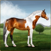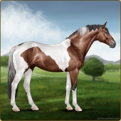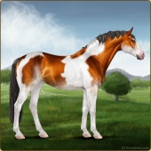 Name: foal 19620429Age: 9 Mare Color: Copper Bay Tobiano Breed: Sport Horse |  |