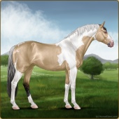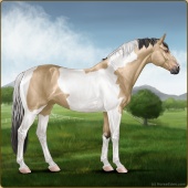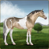 Name: 37793368Age: 18 Mare Color: Buckskin Tobiano Breed: Sport Horse Foal Rating: S/S/S |  |