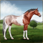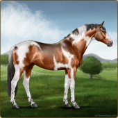 Name: 38584578Age: 15 Gelding Color: Mahogany Bay Tobiano Sabino Breed: Sport Horse Foal Rating: S/P/S |  |