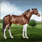 Name: 37823620Age: 18 Mare Color: Blood Bay Tobiano Sabino Leopard Appaloosa Breed: Sport Horse Foal Rating: P/S/S |  |