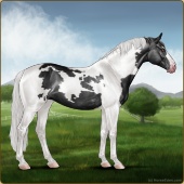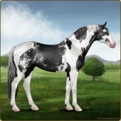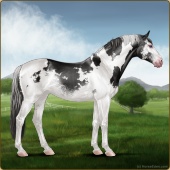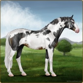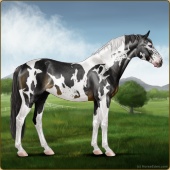 Name: foal 55359494Age: 10 Mare Color: Smokey Black Tobiano Sabino Varnish Appaloosa Breed: Sport Horse |  |