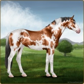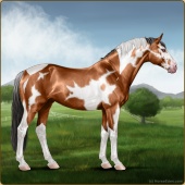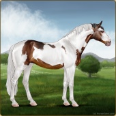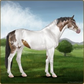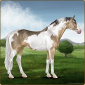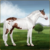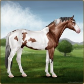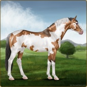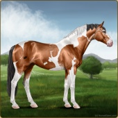 Name: 37793311Age: 18 Mare Color: Light Bay Tobiano Sabino Frame Breed: Sport Horse Foal Rating: S/S/P |  |