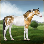 Name: 38584568Age: 15 Gelding Color: Golden Buckskin Tobiano Sabino Frame Breed: Sport Horse Foal Rating: S/S/S |  |