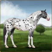 Name: 37823610Age: 18 Gelding Color: Smokey Black Tobiano Snowflake Appaloosa Breed: Sport Horse Foal Rating: S/S/S |  |