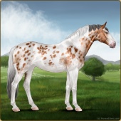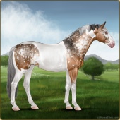 Name: foal 78156134Age: 4 Stallion Color: Light Bay Tobiano Varnish Appaloosa Breed: Sport Horse |  |