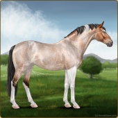Name: 37813879Age: 18 Gelding Color: Grullo Tobiano Sabino Breed: Sport Horse Foal Rating: S/P/S |  |