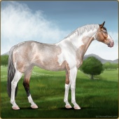 Name: foal 85434191Age: 10 Stallion Color: Light Bay Roan Tobiano Sabino Frame Breed: Sport Horse |  |