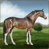 Name: foal 57546999Age: 7 Stallion Color: Mahogany Bay Dun Sabino Breed: Sport Horse |  |