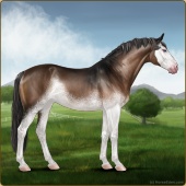 Name: foal 52487084Age: 9 Stallion Color: Light Bay Dun Sabino Rabicano Appaloosa Breed: Sport Horse |  |