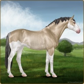 Name: 38230299Age: 16 Gelding Color: Light Bay Dun Splash White Breed: Sport Horse Foal Rating: S/S/S |  |