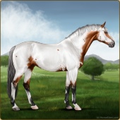 Name: foal 66305561Age: 9 Mare Color: Light Bay Sabino Rabicano Varnish Fewspot Appaloosa Breed: Sport Horse |  |
