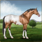 Name: foal 53229864Age: 8 Stallion Color: Buckskin Roan Splash White Sabino Breed: Sport Horse |  |