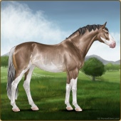 Name: foal 67576871Age: 4 Mare Color: Light Bay Splash White Breed: Sport Horse |  |
