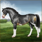 Name: 38782537Age: 14 Gelding Color: Black Splash White Frame Breed: Sport Pony Foal Rating: S/S/S |  |