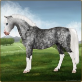 Name: Inis Or WonderlandAge: 16 Gelding Color: Grey Sabino Rabicano Breed: Sport Pony Foal Rating: S/S/S |  |