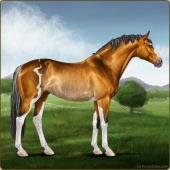 Name: foal 2908942Age: 9 Mare Color: Light Bay Splash White Sabino Rabicano Breed: Sport Horse |  |