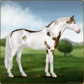 Name: foal 44643432Age: 9 Stallion Color: Liver Chestnut Splash White Sabino Rabicano Frame Breed: Sport Horse |  |