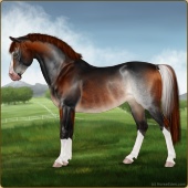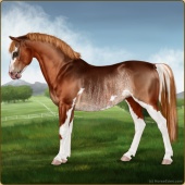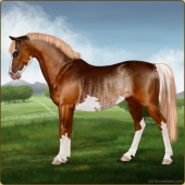 Name: foal 27879347Age: 8 Mare Color: Blood Bay Splash White Sabino Rabicano Breed: Sport Pony |  |