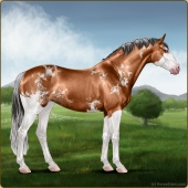 Name: foal 7491541Age: 9 Mare Color: Chestnut Splash White Sabino Rabicano Breed: Sport Pony |  |