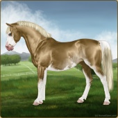 Name: foal 33712687Age: 7 Stallion Color: Palomino Splash White Rabicano Breed: Sport Pony |  |