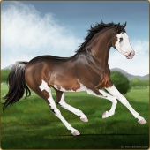 Name: Fabian's NightmareAge: 10 Stallion Color: Mahogany Bay Dun Splash White Sabino Breed: Thoroughbred |  |