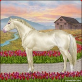 Name: 🍀ChCh Doyle PEE prl rbAge: 8 Stallion Color: Classic Creme Pearl Rabicano Breed: Irish Sport Horse Foal Rating: P/E/E Bravery Rating: Sub-Par For Breeding! |  |