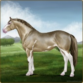 Name: DCh*ToSbRb PPEAge: 15 Mare Color: Gold Dun Tobiano Sabino Rabicano Breed: Irish Sport Horse Foal Rating: P/P/E Bravery Rating: Sub-Par |  |