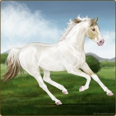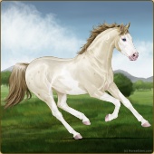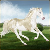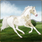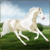 Name: foal 65785599Age: 5 Mare Color: Cremello Tobiano Splash White Sabino Rabicano Breed: Thoroughbred |  |