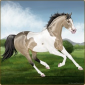 Name: foal 28430297Age: 3 Mare Color: Silver Buckskin Roan Pearl Splash White Sabino Rabicano Breed: Thoroughbred |  |