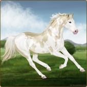 Name: foal 87154647Age: 5 Mare Color: Cremello Tobiano Splash White Sabino Breed: Thoroughbred |  |